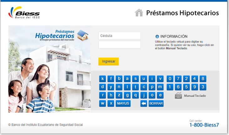 Una vez que estés seguro que cumples con los requisitos, lo primero que debes hacer es una precalificación de crédito. Para esto, debes ingresar en la web del BIESS, en la página de Hipotecarios, clic en Vivienda Terminada y a Solicitar Préstamo. Vas a ver la siguiente página: