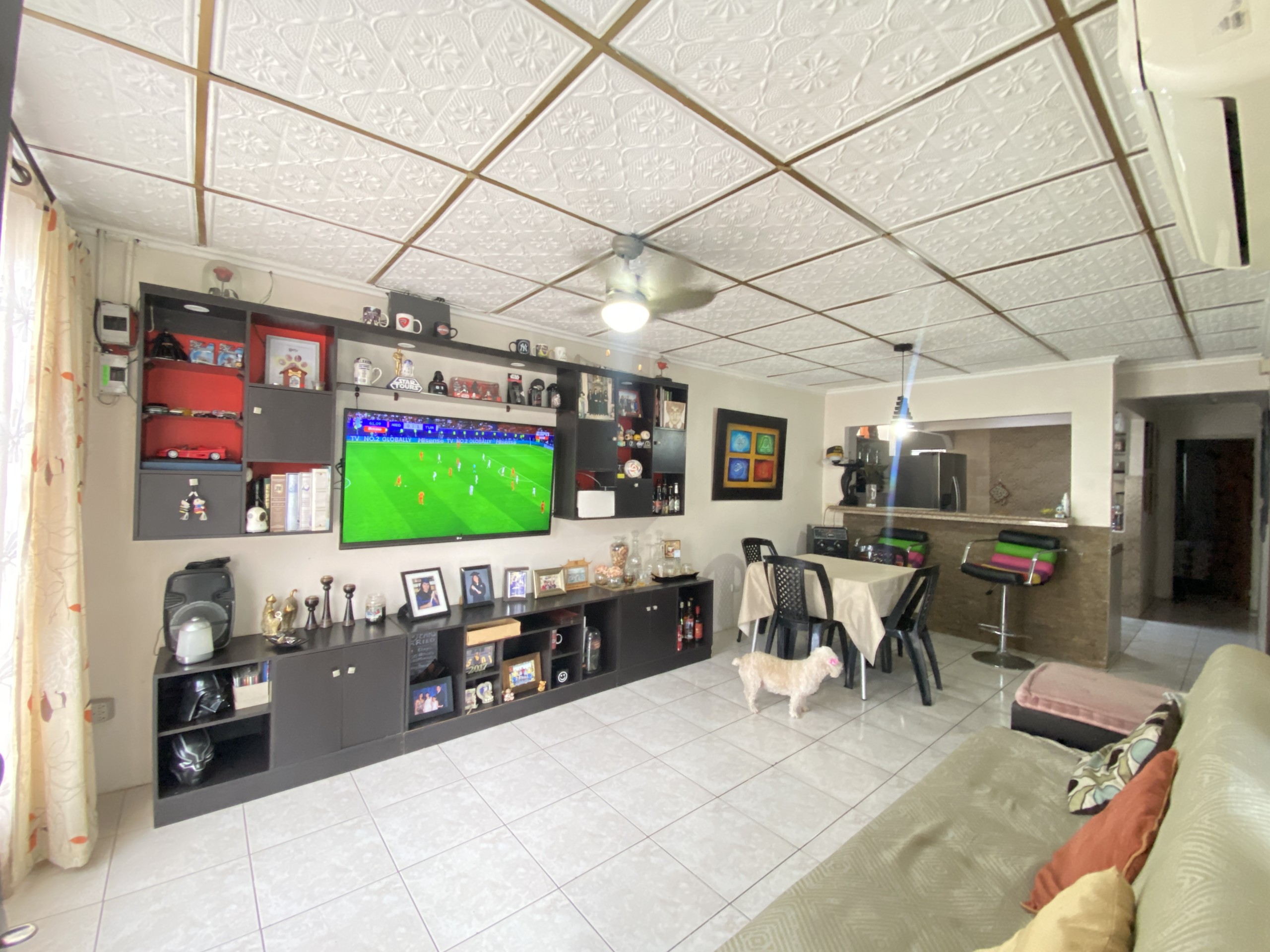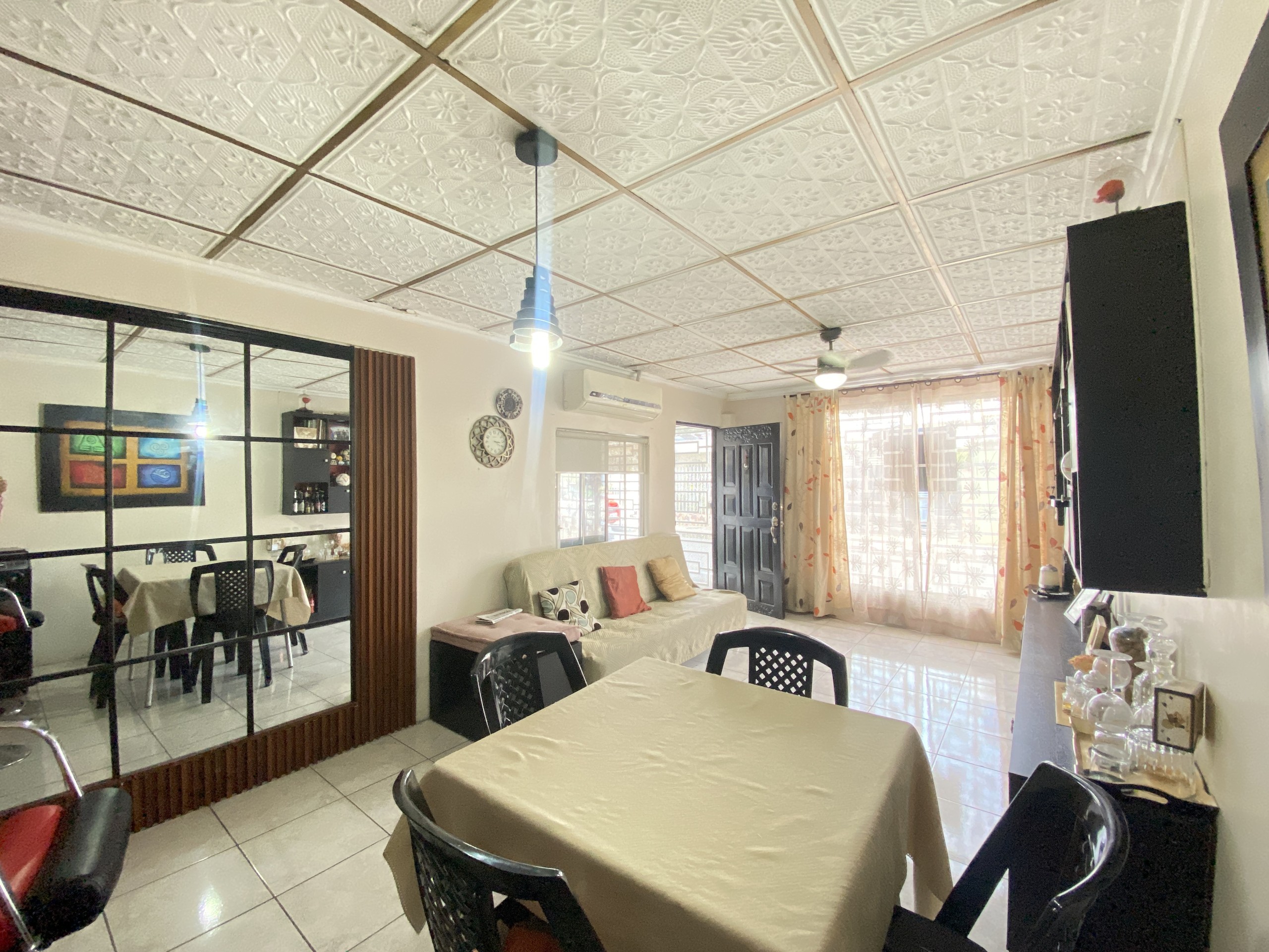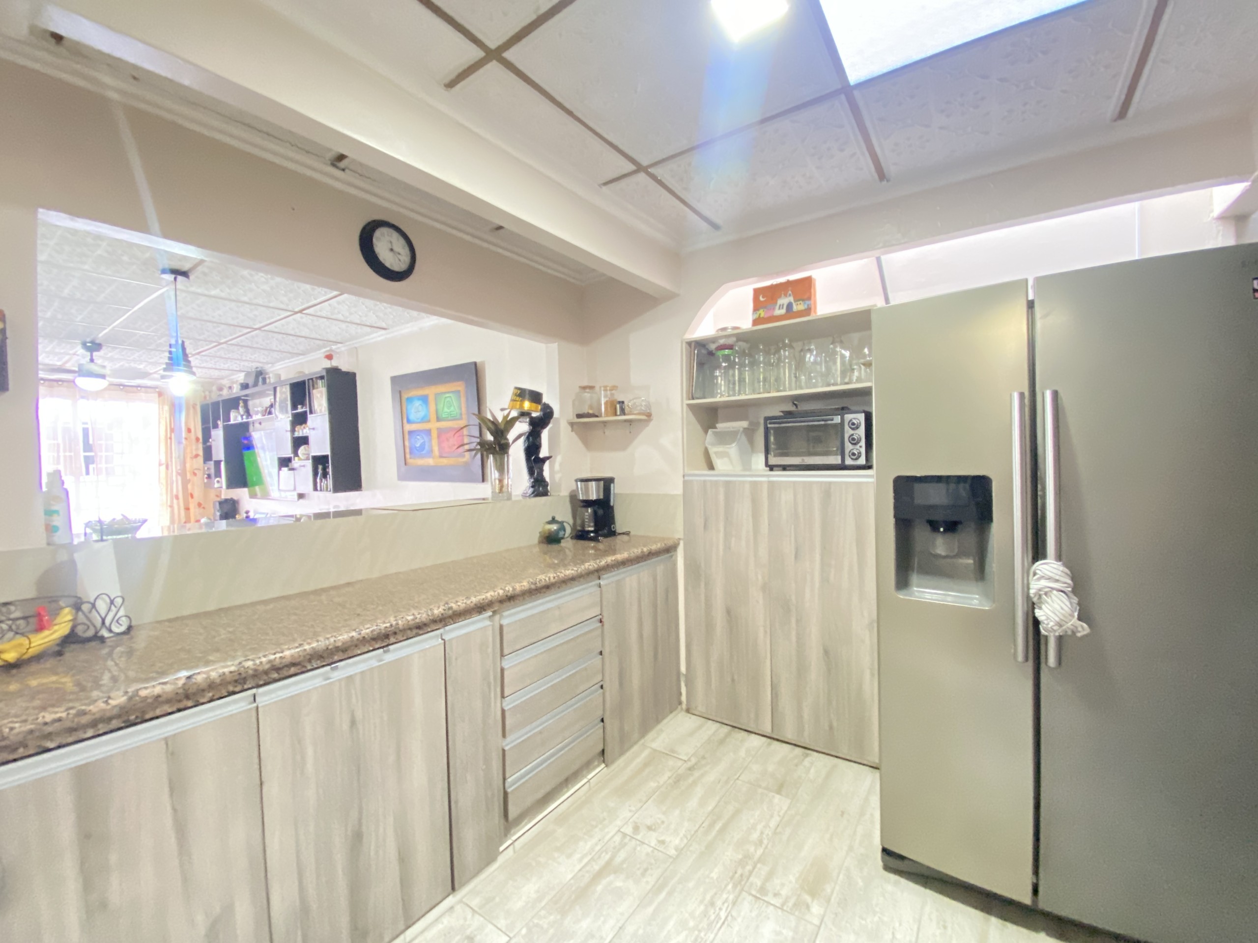 La propiedad cuenta con una zona de parqueo, seguido de un amplio hall, en un solo ambiente sala, comedor, cocina y zona de lavandería.