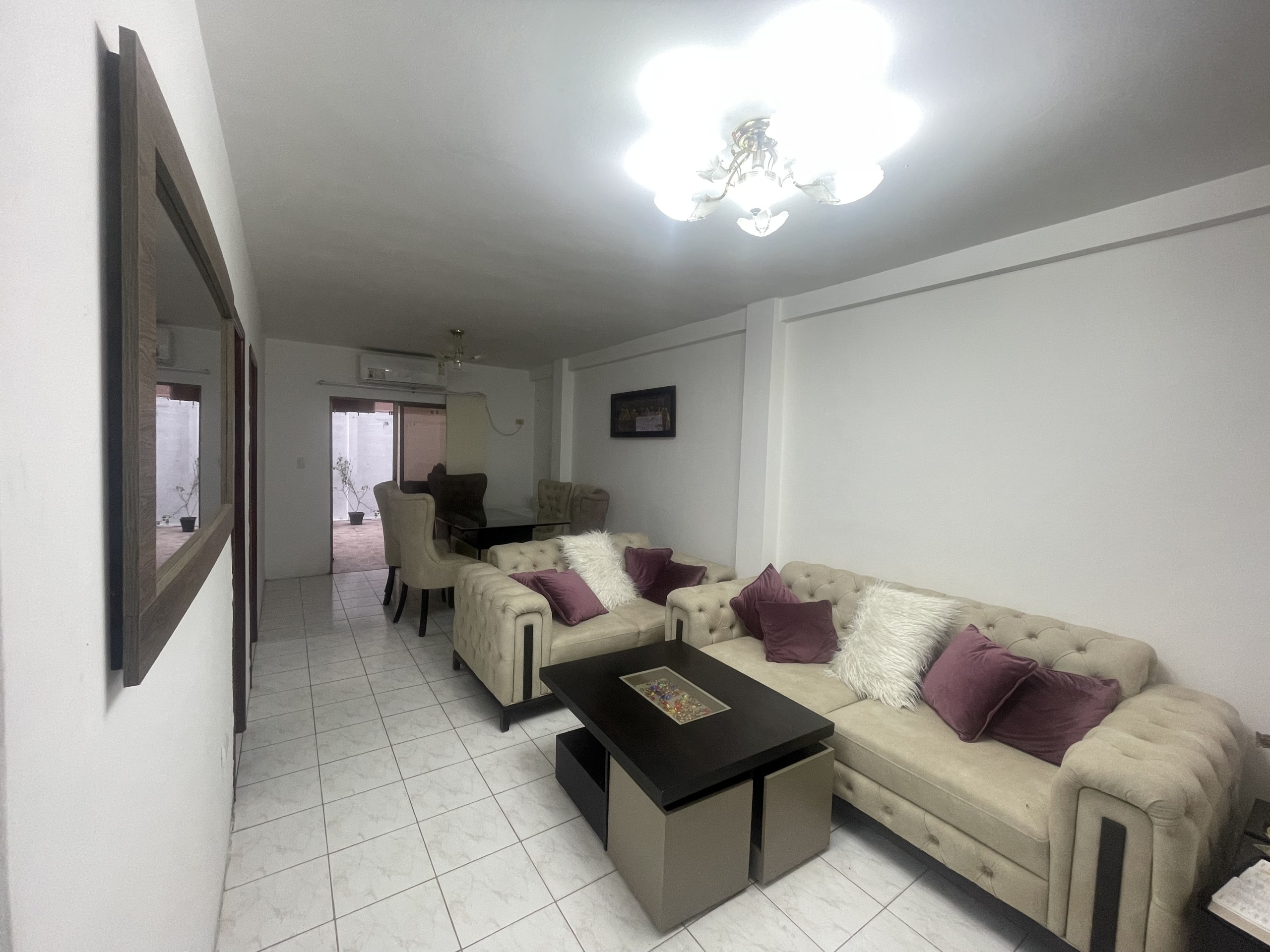 Tiene 4 habitaciones, 3 baños, doble sala, comedor, cocina, zona de lavandería, amplio patio, zona de parqueo.