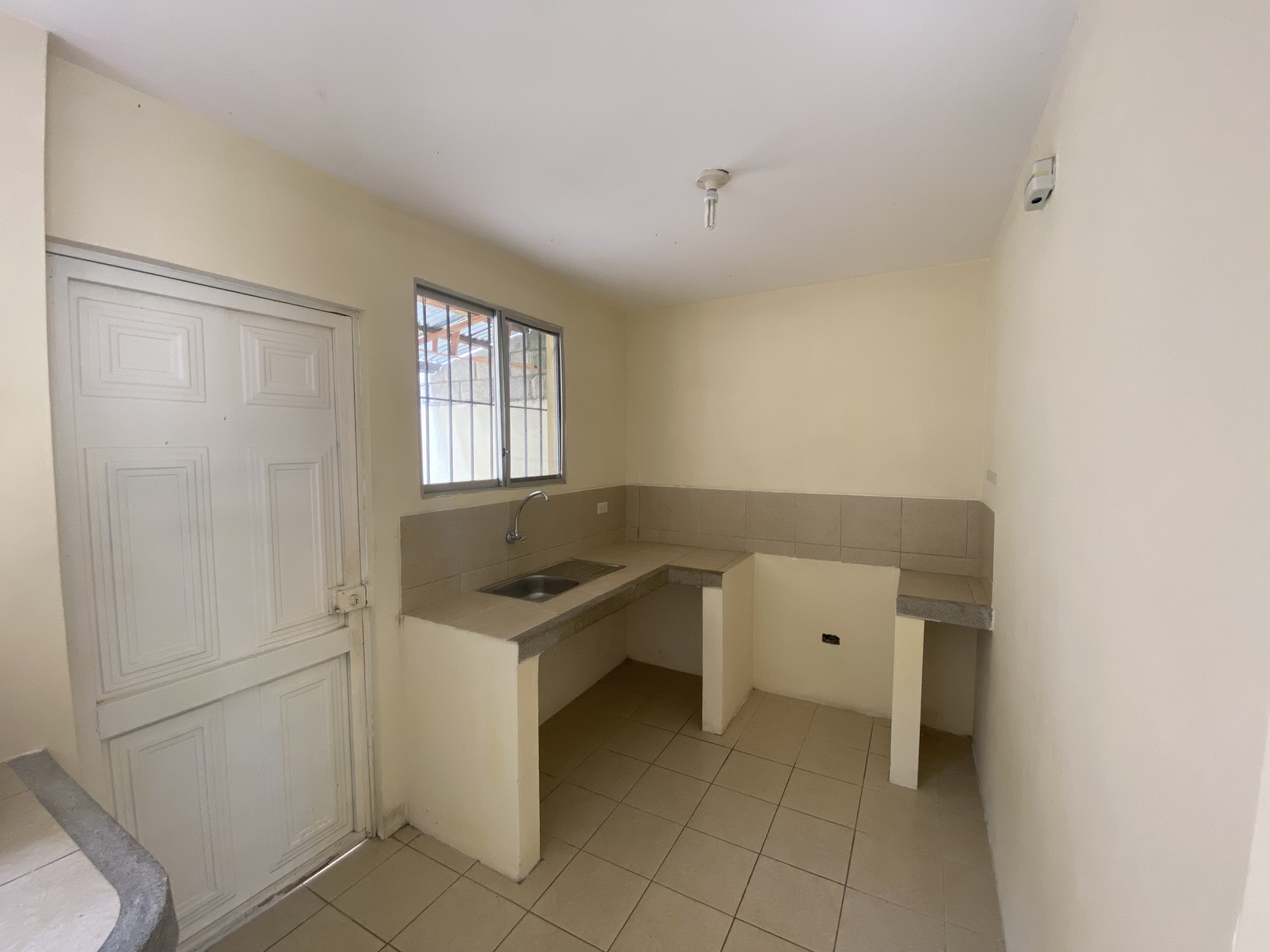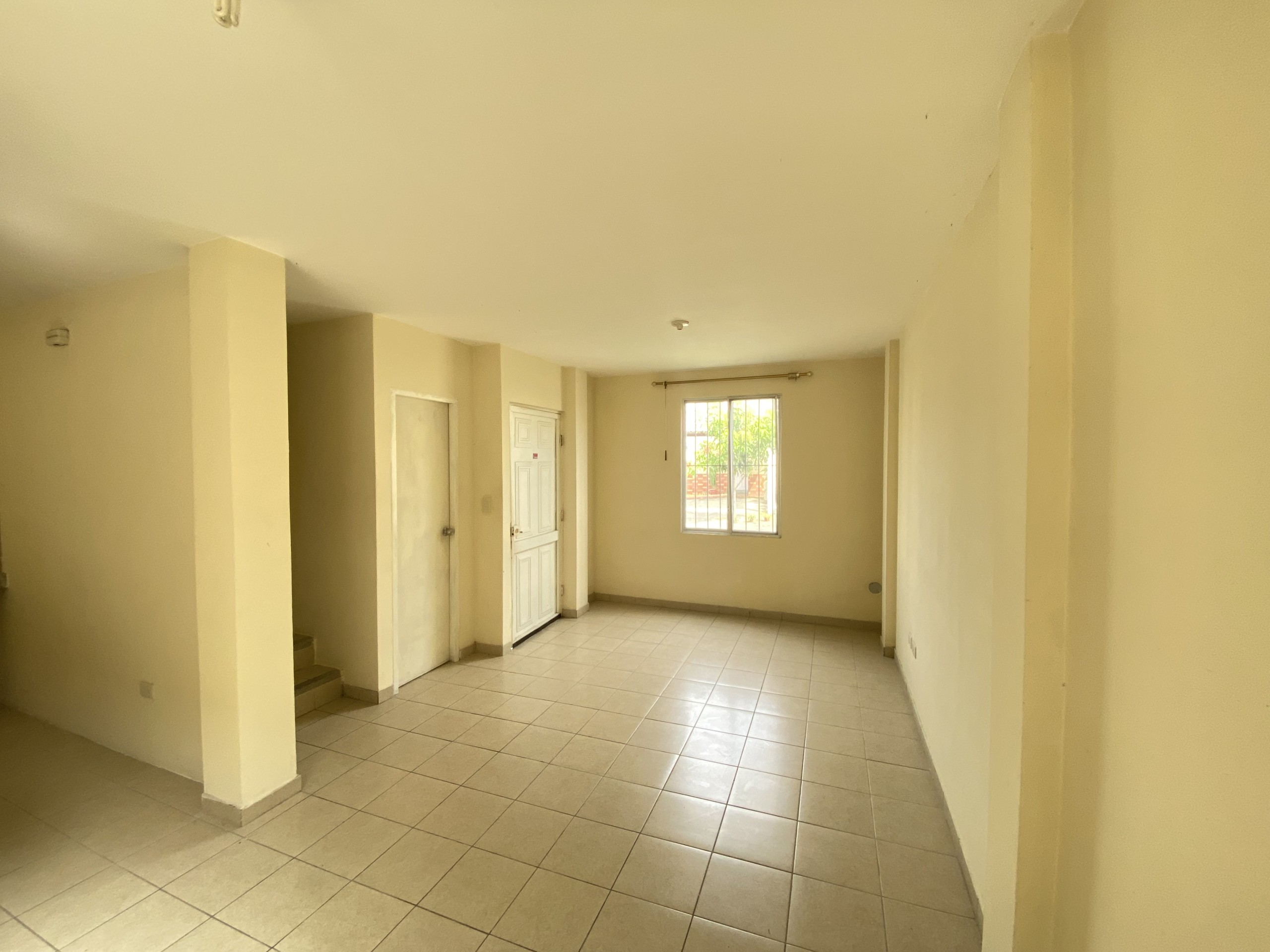 La propiedad cuenta con un parqueo para dos vehículos, seguido en un solo ambiente sala, baño de visitas, comedor y cocina con acceso al patio. Dispone de 3 habitaciones y un baño completo en planta alta.